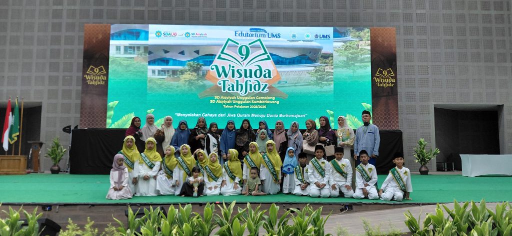 SD Aisyiyah menyelenggarakan Wisuda Tahfidz Al-Qur’an 2026 pada Sabtu, 25 April 2026 di Edutorium Universitas Muhammadiyah Surakarta, mulai pukul 07.30 WIB. Bertempat di panggung megah Edutorium UMS, kegiatan ini berlangsung khidmat, semarak, dan penuh haru sebagai wujud syukur atas tumbuhnya generasi yang mencintai Al-Qur’an sejak usia dini.